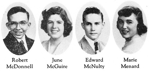 "Mac" as he is more commonly, called, was one of the boys respected for his neat appearance and mannerly ways. He was a player on the basketball team and during baseball season he could be seen as star pitcher. "Mac" has found a place deep in the hearts of all his fellow students, and we know he will stay there. Besides all of his other good qualities, he is a hard worker at his studies.